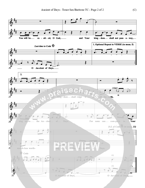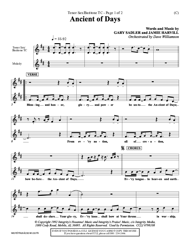 Download the Orchestration for Ancient Of Days by Gary Sadler, from the album Word Music Now. This song was arranged by Dave Williamson in the key of C, D.