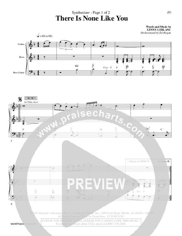 Download the Orchestration for There Is None Like You by Lenny LeBlanc, from the album Word Music Now. This song was arranged by Ed Hogan in the key of F, G.