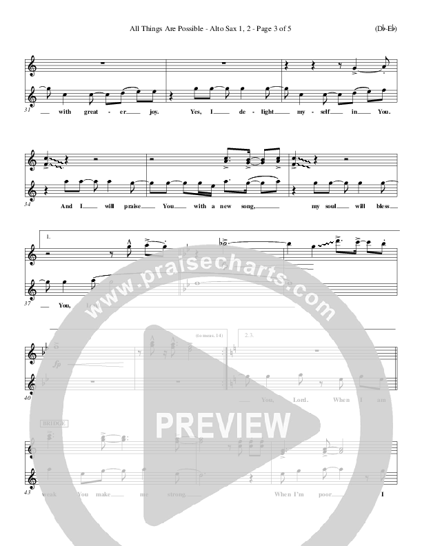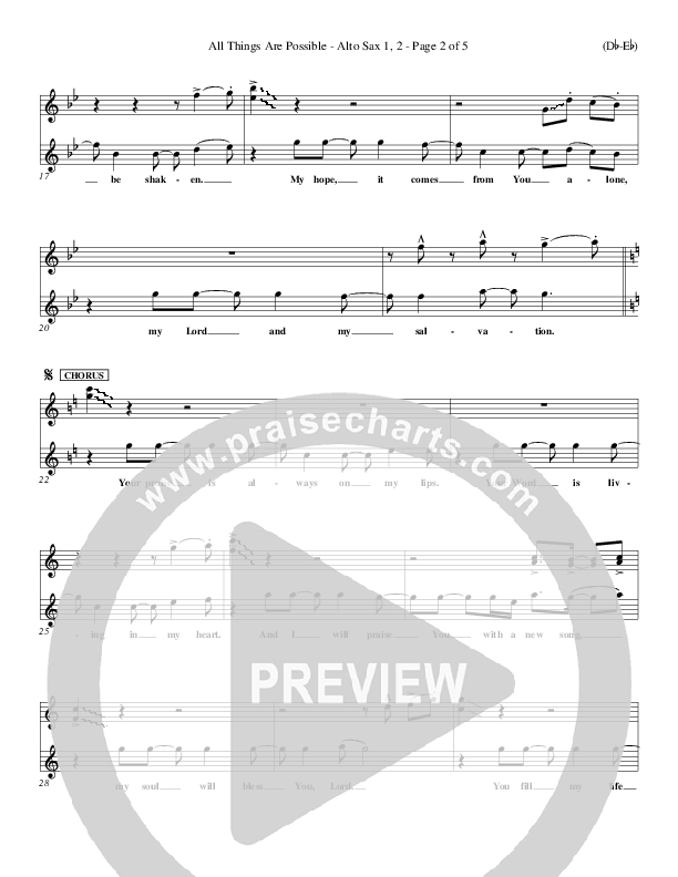 Download the Alto Sax 1,2 sheet music for All Things Are Possible by Darlene Zschech, from the album Word Music Now.