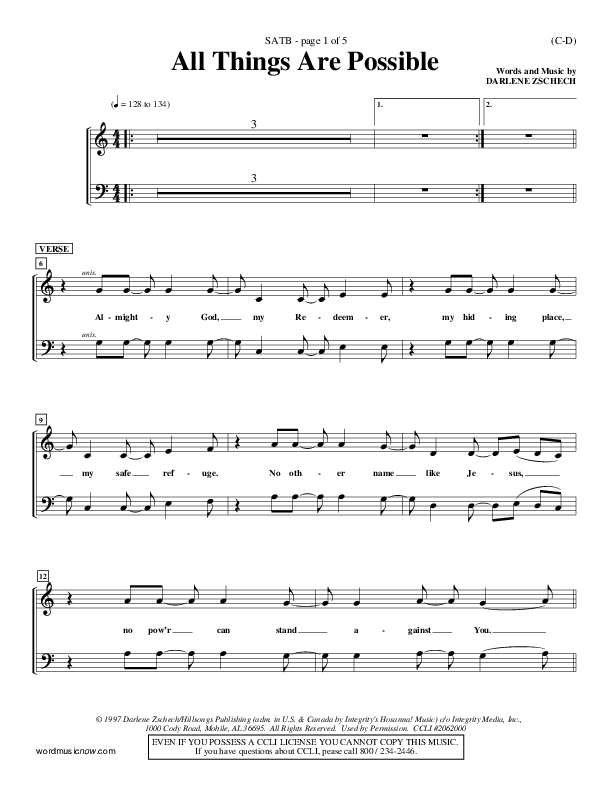 Download the Choir Sheet for All Things Are Possible by Darlene Zschech, from the album Word Music Now.