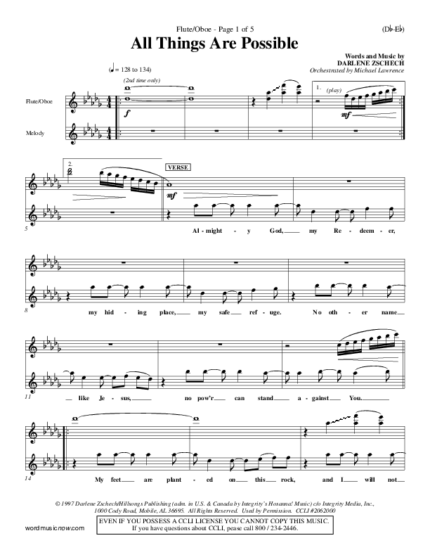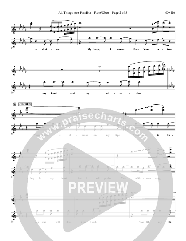 Download the Flute/Oboe sheet music for All Things Are Possible by Darlene Zschech, from the album Word Music Now.