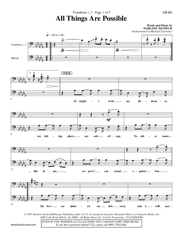 Download the Trombone 1,2 sheet music for All Things Are Possible by Darlene Zschech, from the album Word Music Now.