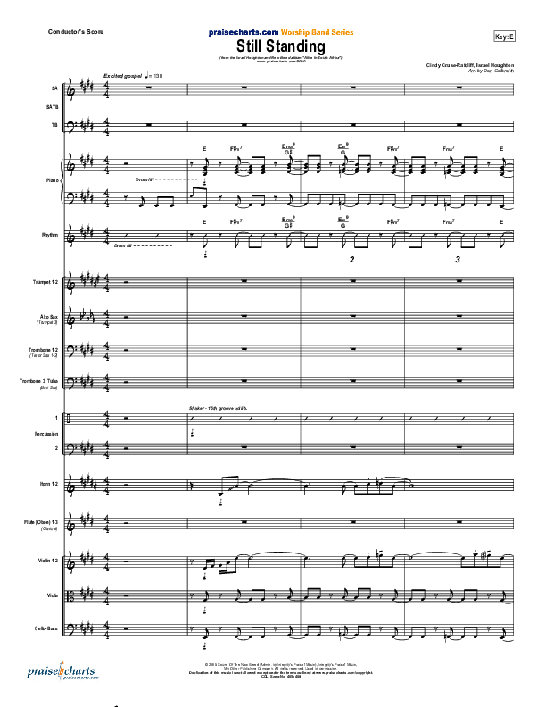 Download the Orchestration for Still Standing by Israel Houghton, from the album Alive in South Africa. This song was arranged by Daniel Galbraith in the key of E, F.