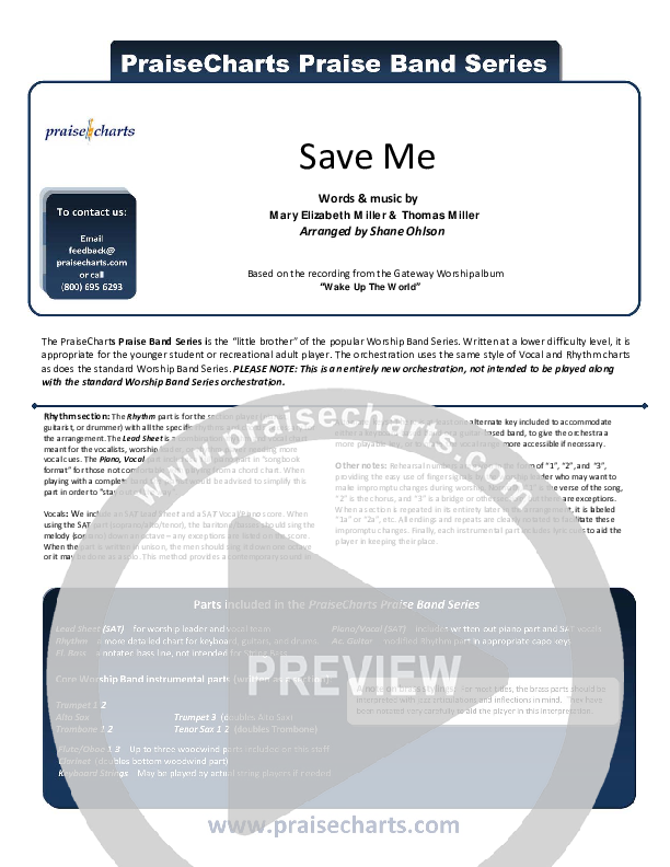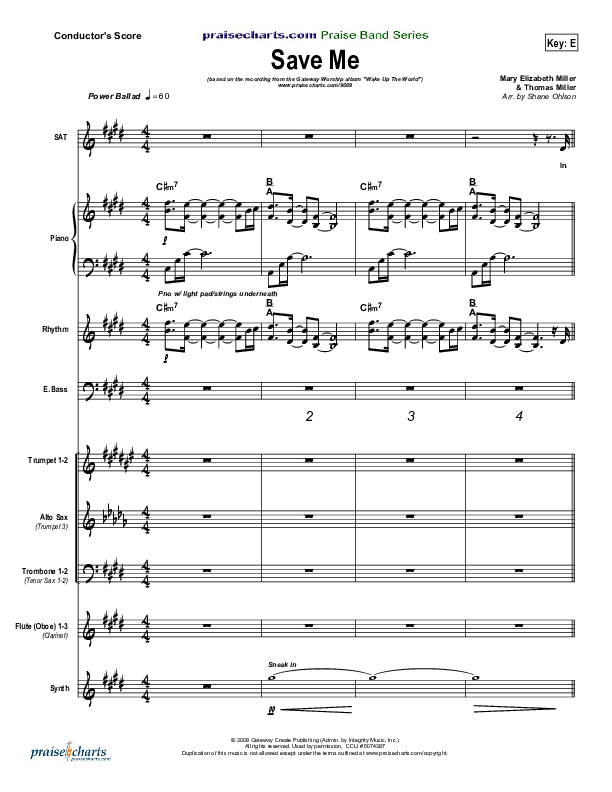 Download the Orchestration for Save Me by Gateway Worship, from the album Wake Up The World. This song was arranged by Integrity Music in the key of E, Eb.