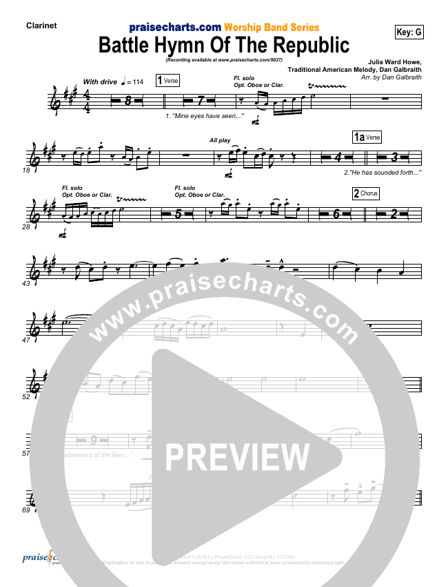 Battle Hymn Of The Republic Sheet Music PDF (PraiseCharts Band / Arr. Daniel Galbraith)