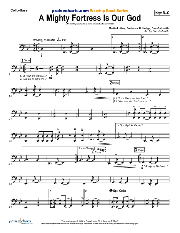 Download the Orchestration for A Mighty Fortress Is Our God by PraiseCharts Band / Arr. Daniel Galbraith, from the album Patriotic PraiseHymns. This song was arranged by Daniel Galbraith in the key of Bb, C.