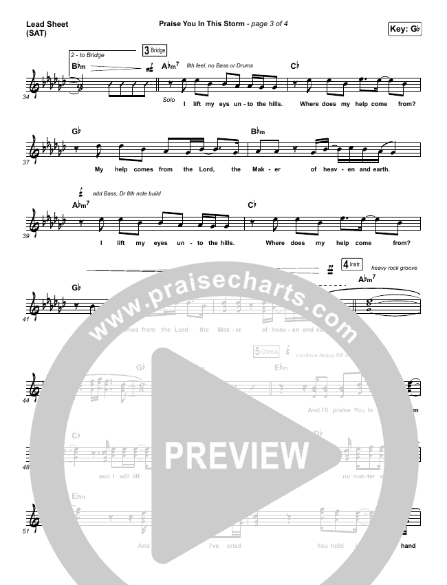 Download the sheet music for Praise You In This Storm by Casting Crowns, from the album Lifesong. This song was arranged by John Wasson / Daniel Galbraith in the key of E, Gb.
