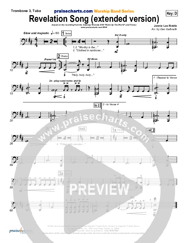 Revelation Song (Extended Version) Trombone/Tuba Sheet Music PDF (Gateway Worship)