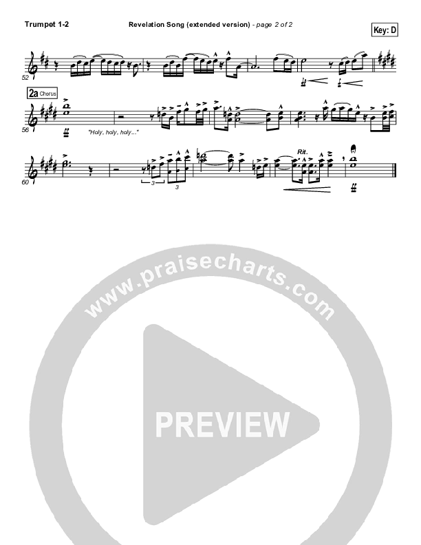 Revelation Song (Extended Version) Trumpet Sheet Music PDF (Gateway Worship)
