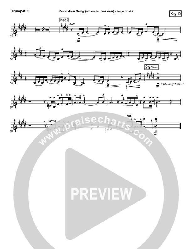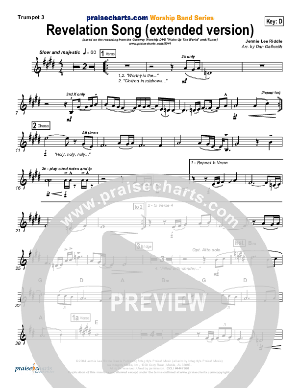 Revelation Song (Extended Version) Trumpet Sheet Music PDF (Gateway Worship)