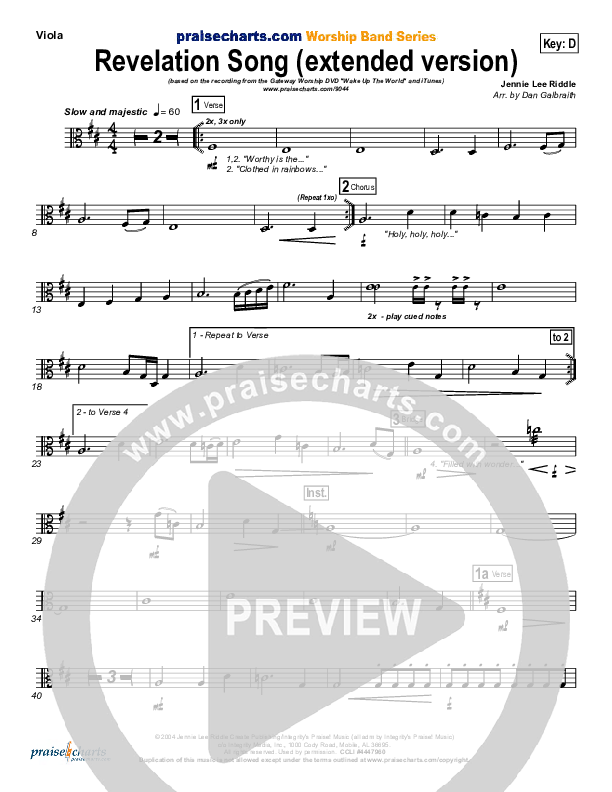 Download the Viola sheet music for Revelation Song (Extended Version) by Gateway Worship, from the album Wake Up The World. This song was arranged by Daniel Galbraith in the key of D, Eb.