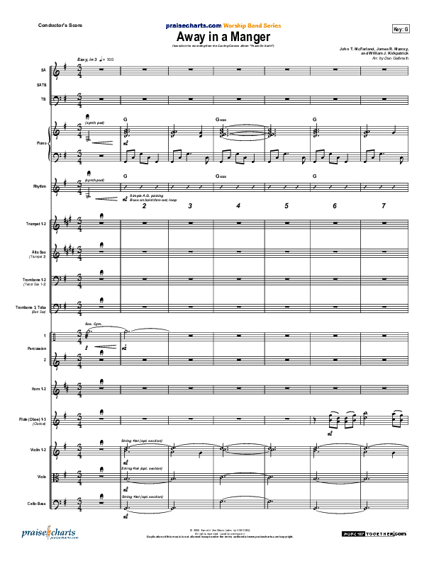Download the Orchestration for Away In A Manger by Casting Crowns, from the album Peace On Earth. This song was arranged by Daniel Galbraith in the key of G, Gb.