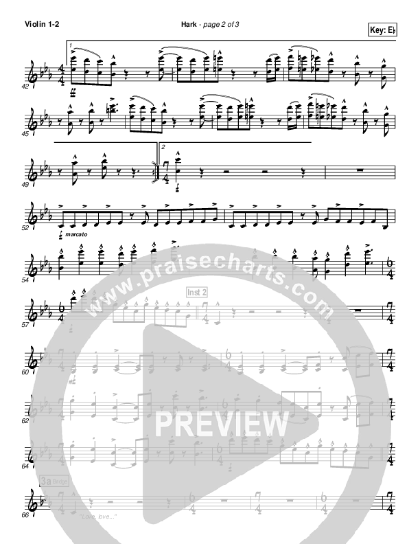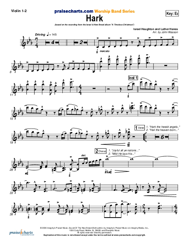 Download the Violin sheet music for Hark by Israel Houghton, from the album A Timeless Christmas. This song was arranged by John Wasson in the key of C, Eb, F.