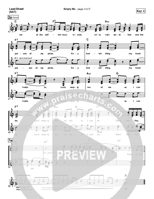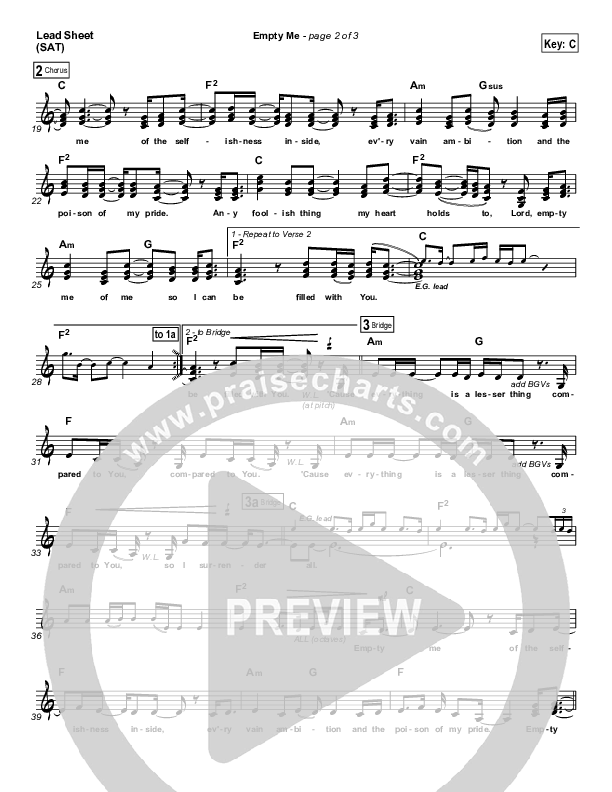 Download the Orchestration for Empty Me by Chris Sligh, from the album Running Back To You. This song was arranged by Daniel Galbraith in the key of C, Eb.