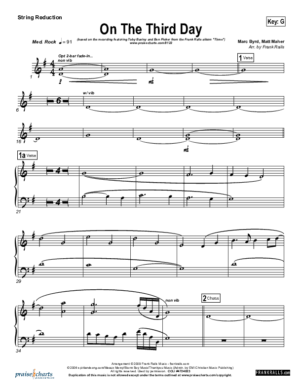 Download the Orchestration string parts for On The Third Day by Frank Ralls / Toby Baxley / Ben Picker, from the album On The Third Day (Single). This song was arranged by Frank Ralls in the key of G, Gb.