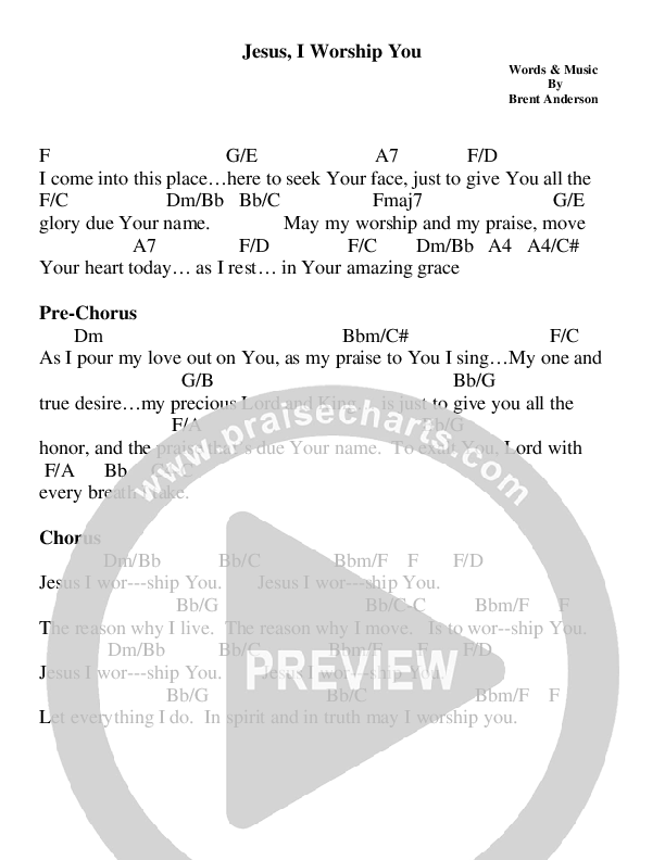 Jesus I Worship You Chords PDF (Brent Anderson)