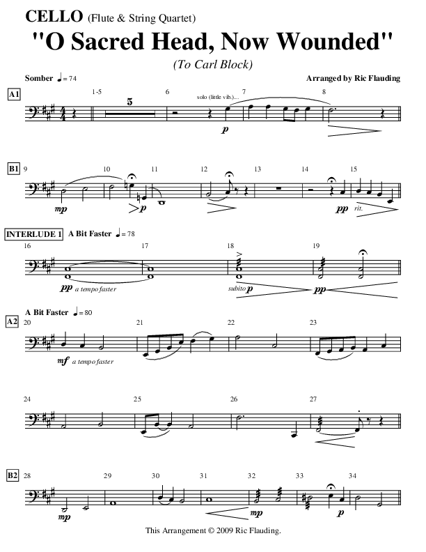 O Sacred Head Now Wounded (Instrumental) Cello Sheet Music PDF