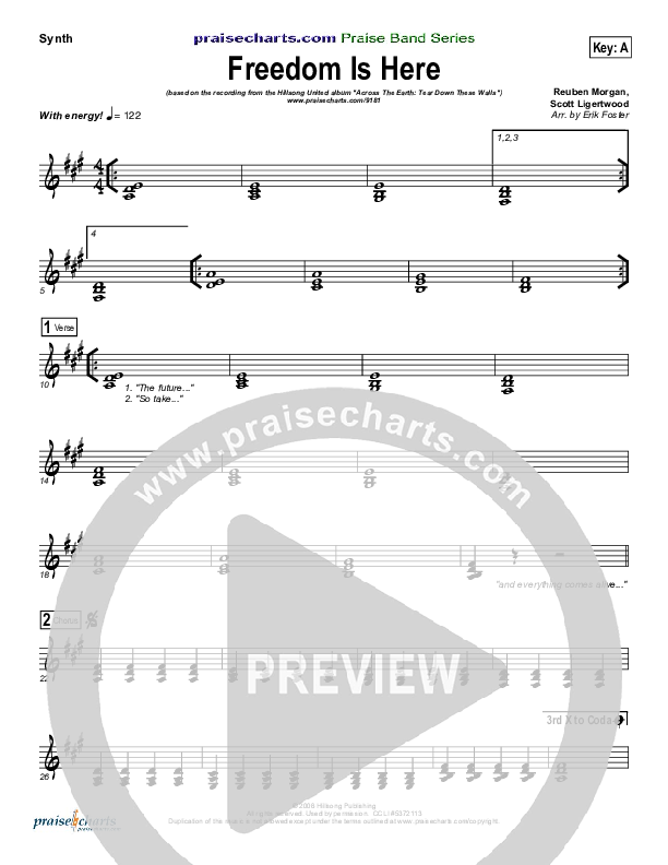Download the Orchestration for Freedom Is Here by Hillsong UNITED, from the album Across The Earth: Tear Down The Walls. This song was arranged by Erik Foster in the key of A, G.