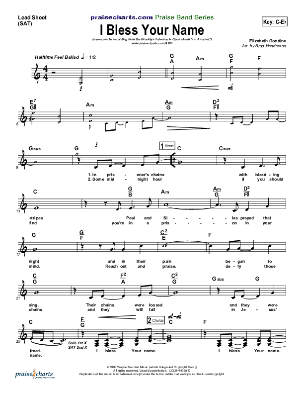 Download the Orchestration for I Bless Your Name by Songs of Brooklyn Tabernacle Choir (PraiseCharts Edition), from the album Songs Of Brooklyn Tabernacle Choir. This song was arranged by Brad Henderson in the key of Bb, C.
