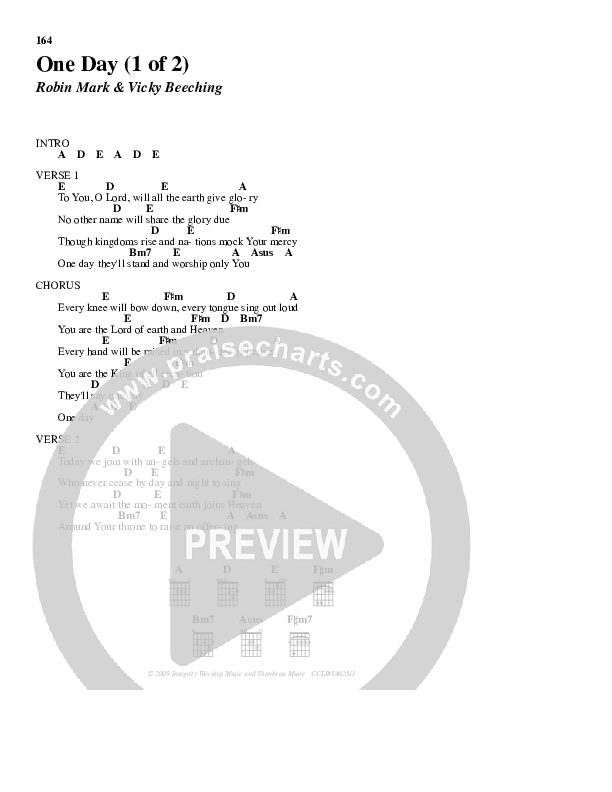 Download the PDF Chord Charts for One Day by Robin Mark, from the album Year Of Grace. This song was arranged by Integrity Music in the key of A.