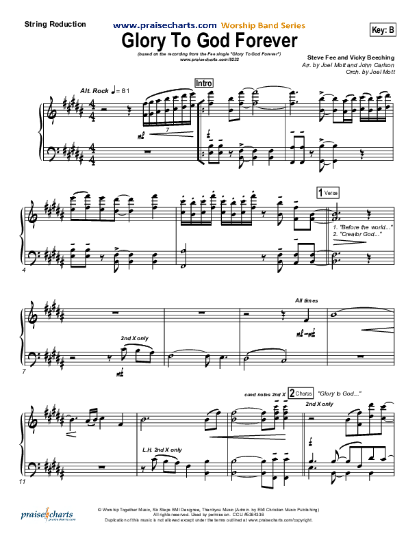 Download the Orchestration for Glory To God Forever by FEE Band, from the album Hope Rising. This song was arranged by Joel Mott / John Carlson in the key of B.