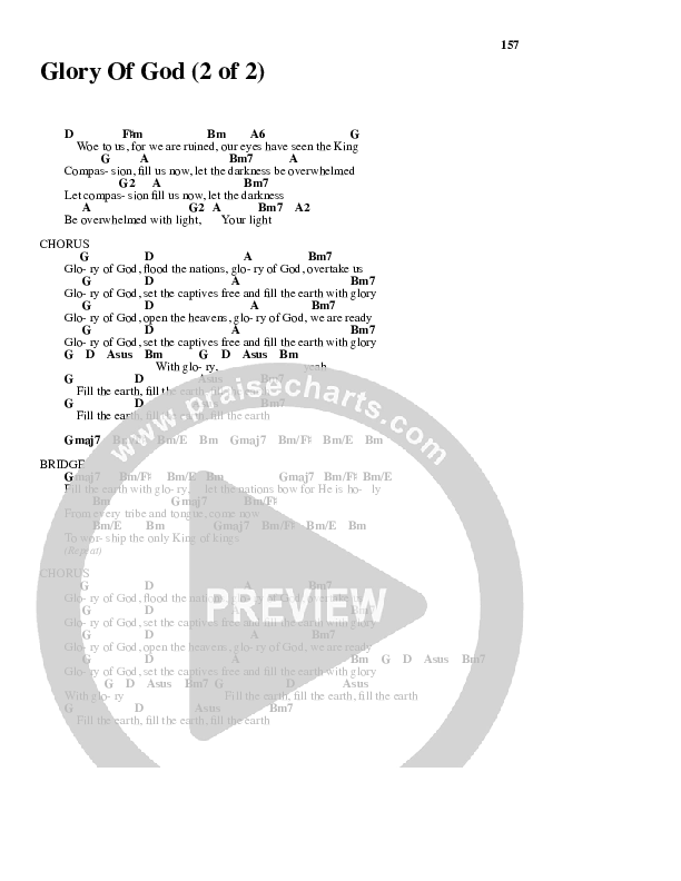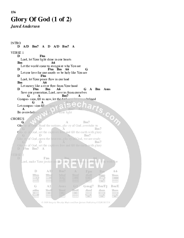 Download the PDF Chord Charts for Glory of God by Jared Anderson, from the album Live From My Church. This song was arranged by Integrity Music in the key of D.