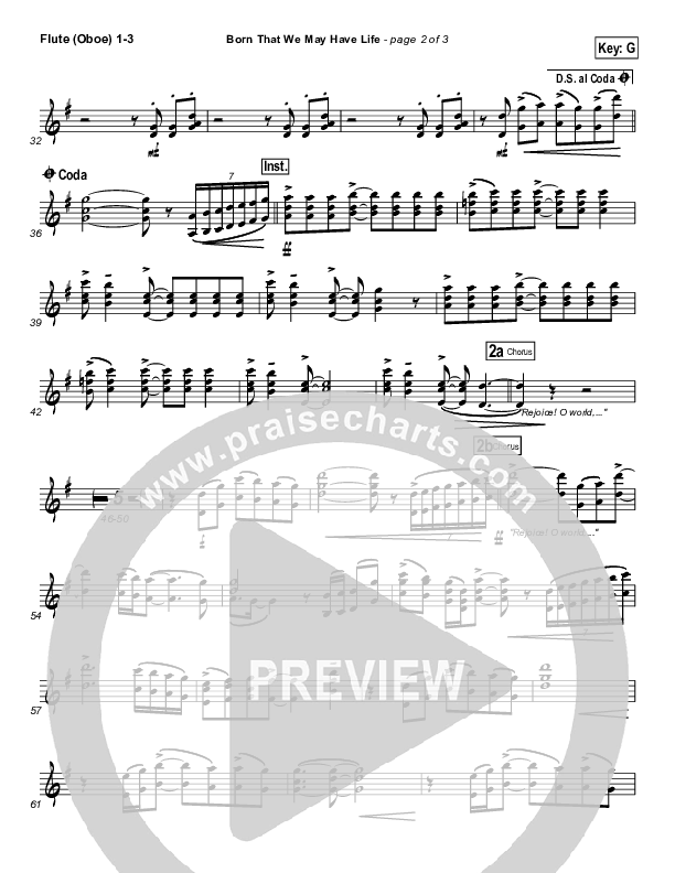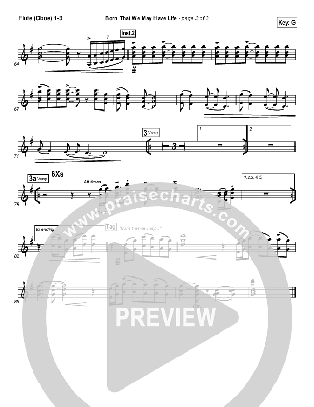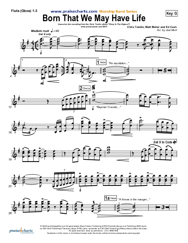 Download the Flute/Oboe sheet music for Born That We May Have Life by Chris Tomlin, from the album Glory In The Highest: Christmas Songs of Worship. This song was arranged by Joel Mott in the key of A, G.