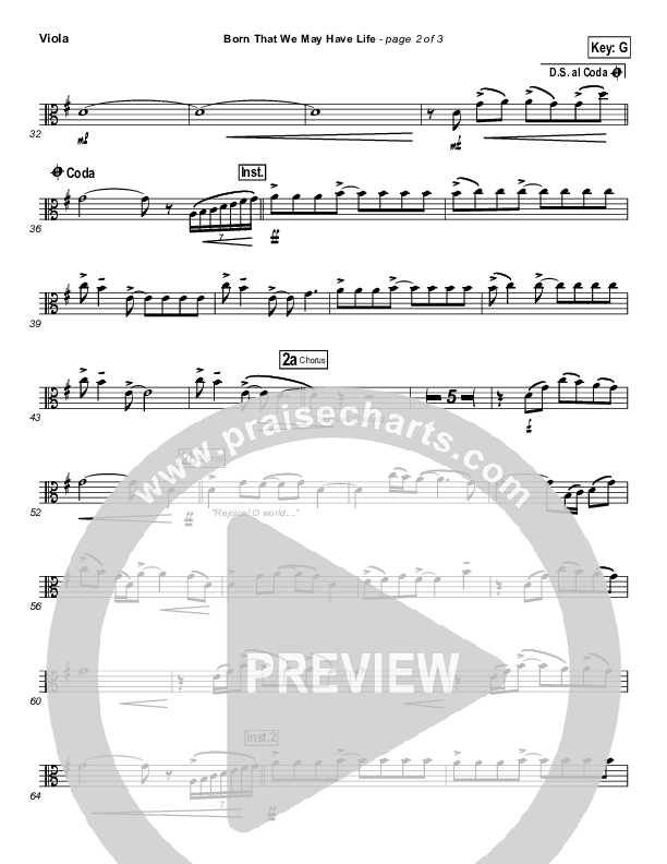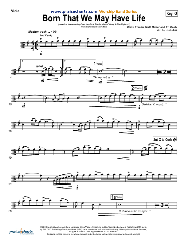 Download the Viola sheet music for Born That We May Have Life by Chris Tomlin, from the album Glory In The Highest: Christmas Songs of Worship. This song was arranged by Joel Mott in the key of A, G.