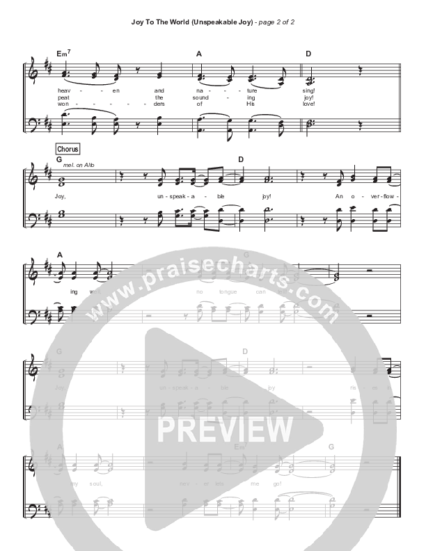 Download the Hymn Sheet for Joy To The World (Unspeakable Joy) by Chris Tomlin, from the album Glory In The Highest: Christmas Songs of Worship. This song was arranged by Daniel Galbraith in the key of C, D.