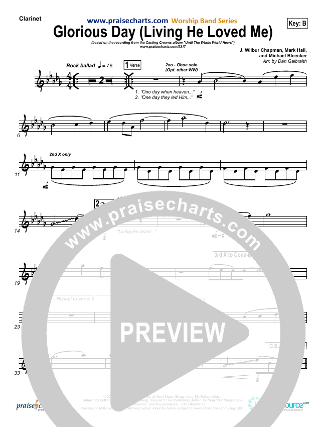 Glorious Day (Living He Loved Me) Sheet Music PDF (Casting Crowns)