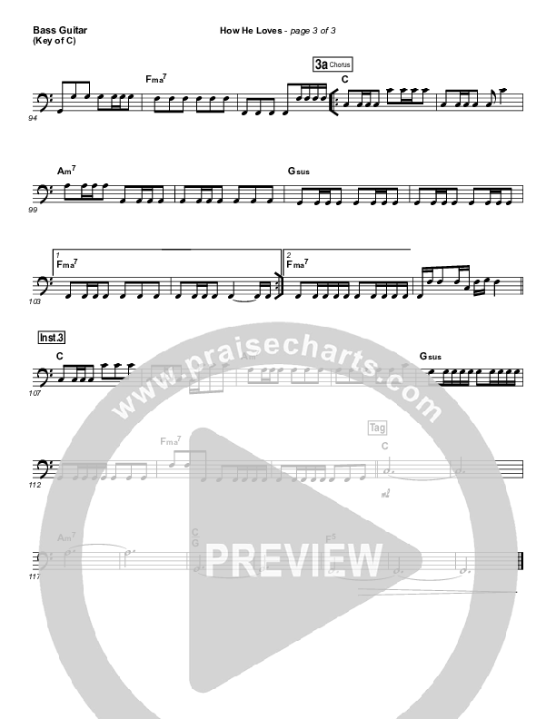 Download the Bass Guitar parts for How He Loves by David Crowder, from the album Church Music. This song was arranged by Joel Mott / Jared Haschek in the key of Bb, C.