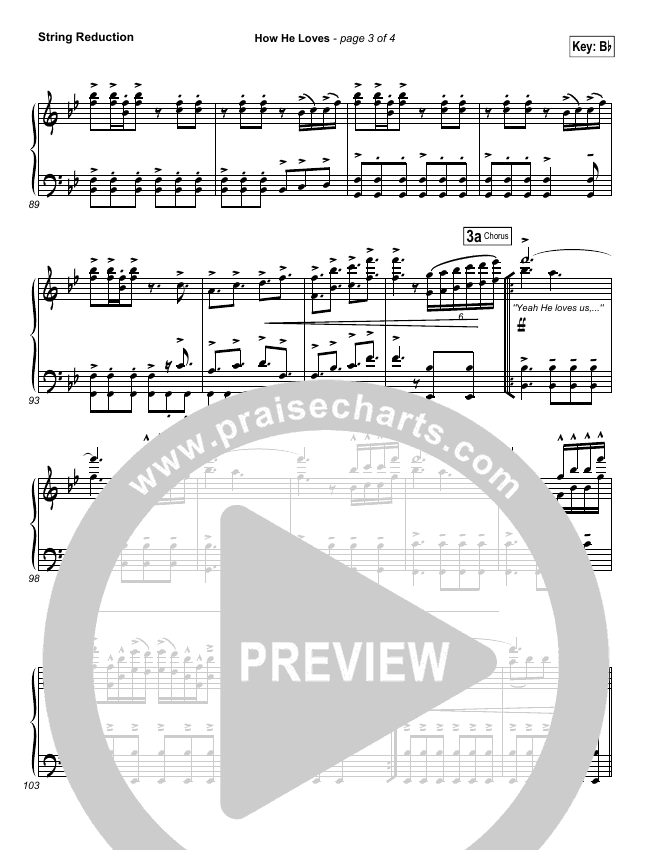 Download the Orchestration string parts for How He Loves by David Crowder, from the album Church Music. This song was arranged by Joel Mott / Jared Haschek in the key of Bb, C.