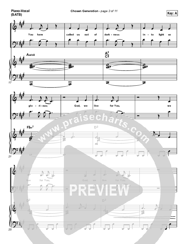 Download the sheet music for Chosen Generation by Chris Tomlin / Passion, from the album Passion: Awakening. This song was arranged by Joel Mott in the key of A, B.