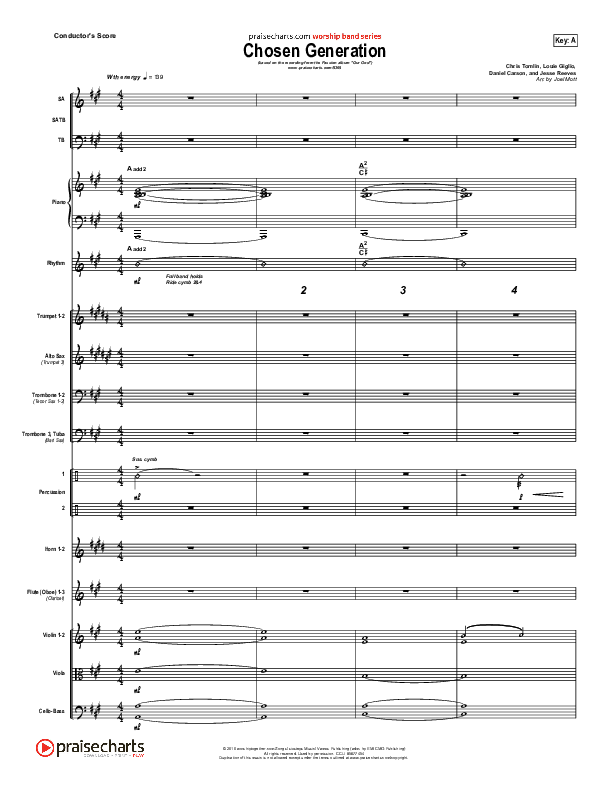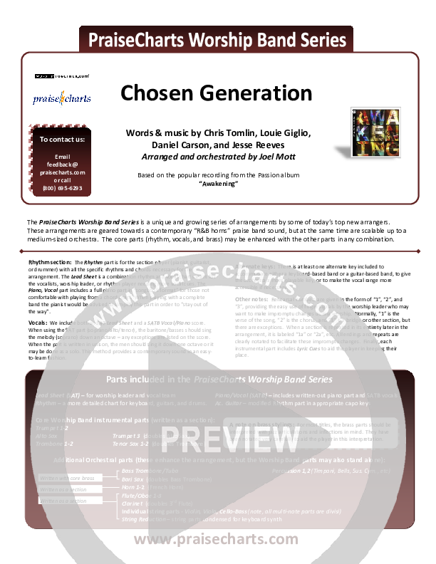 Download the Orchestration for Chosen Generation by Chris Tomlin / Passion, from the album Passion: Awakening. This song was arranged by Joel Mott in the key of A, B.