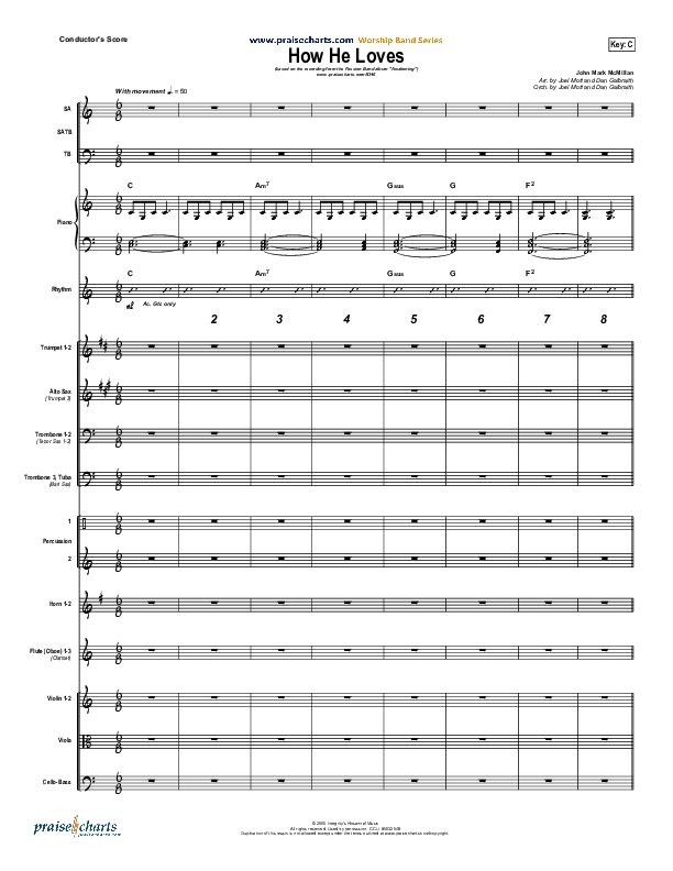 Download the Orchestration for How He Loves by David Crowder / Passion, from the album Passion: Awakening. This song was arranged by Joel Mott / Daniel Galbraith in the key of Bb, C, F.