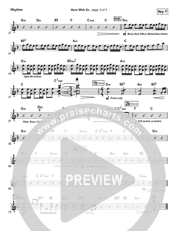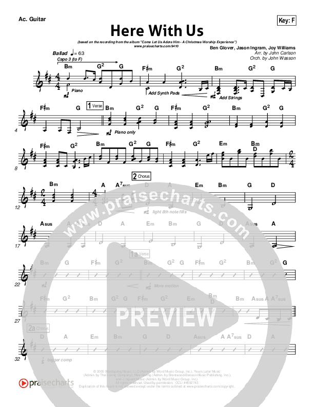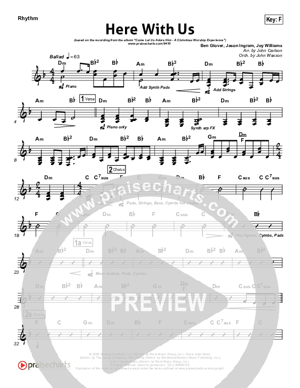 Download the Rhythm Chart for Here With Us by Joy Williams, from the album Come Let Us Adore Him: A Christmas Worship Experience. This song was arranged by John Carlson / John Wasson in the key of D, E, Eb, F, G.